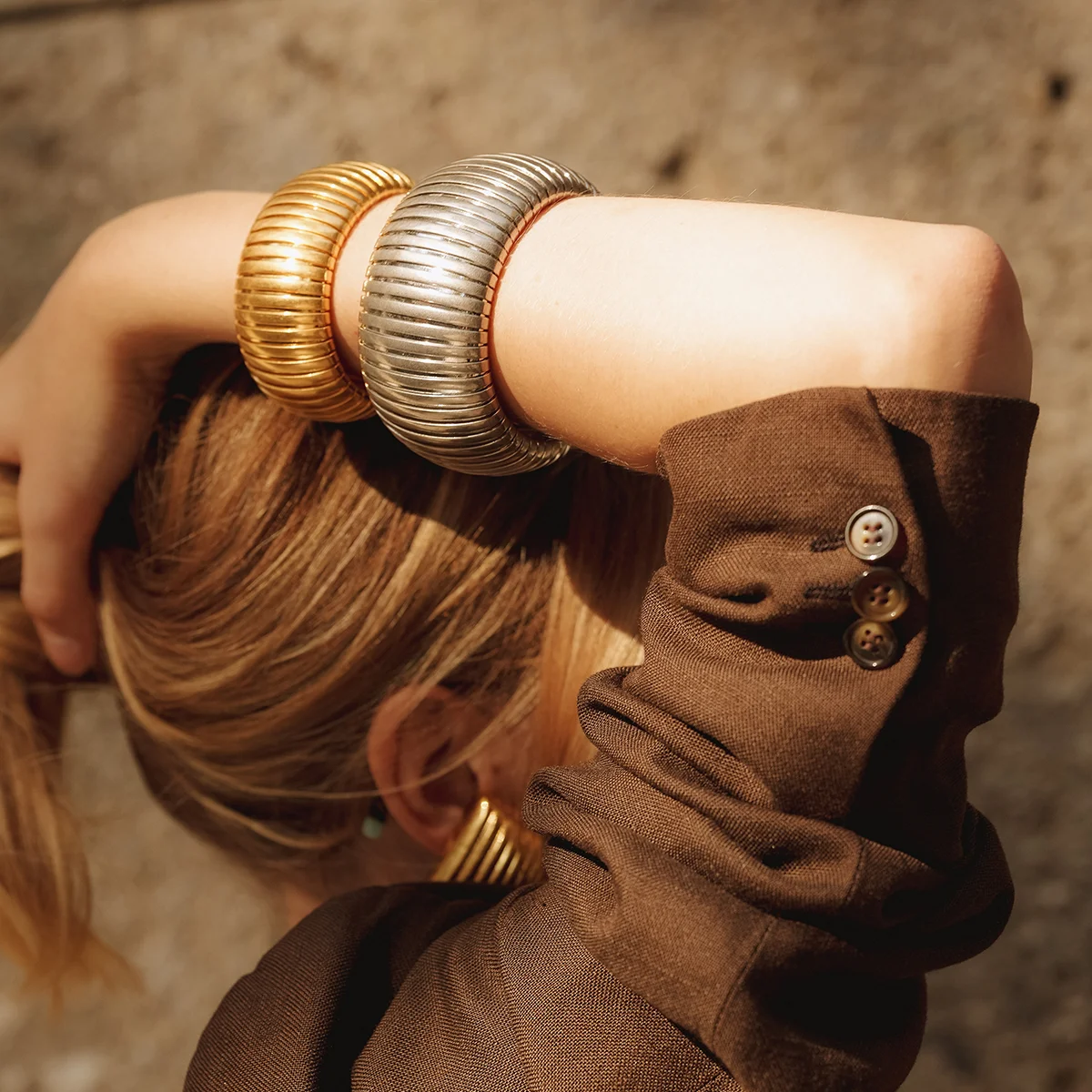 Nata dall’ingegno degli artigiani italiani negli anni ’40, la lavorazione tubo gas trasforma sottili lamine metalliche in una maglia elastica, resistente e incredibilmente confortevole. L’ispirazione arriva dai tubi metallici estensibili utilizzati in ambito industriale: strutture leggere, cave all’interno e capaci di piegarsi senza deformarsi. Un design fluido, iconico e senza tempo che avvolge con eleganza ogni gesto.